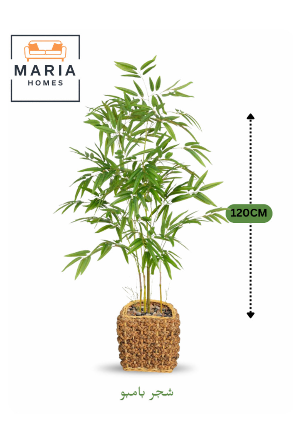 Create a refreshing natural look with this artificial bamboo tree 120 cm featuring lush green leaves and realistic stems in a woven basket pot.; Perfect for living rooms, majlis, offices, and receptions, this lifelike bamboo tree adds elegance and freshness without watering or sunlight.; A stylish and durable indoor decorative plant for modern interiors and gifting.