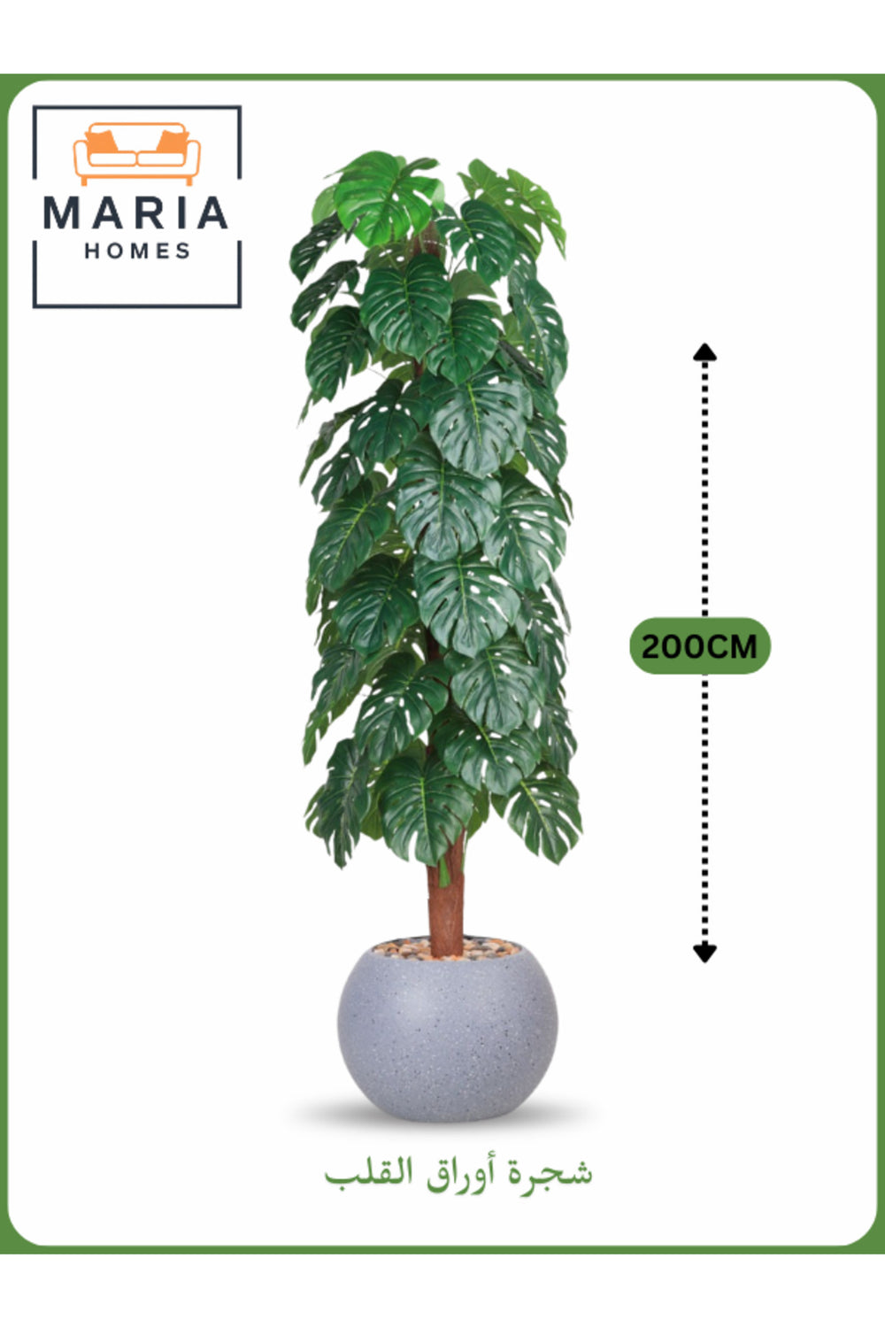 "Make a bold statement with this 200 cm artificial Monstera tree, designed with dense, heart-shaped split leaves for a dramatic tropical effect.; It features a realistic trunk and comes in a rounded beige pot filled with decorative pebbles, perfect for homes, offices, hotels, or lobbies.; This large faux plant is available in six elegant pot colors: beige, black, gold, white, gray, and brown, making it easy to match any decor.; A lush greenery option without the maintenance.; artificial monstera tree, 200 cm tall indoor plant, heart-shaped leaf faux tree, decorative large plant, artificial tree with colored pot options, indoor tropical decor.;