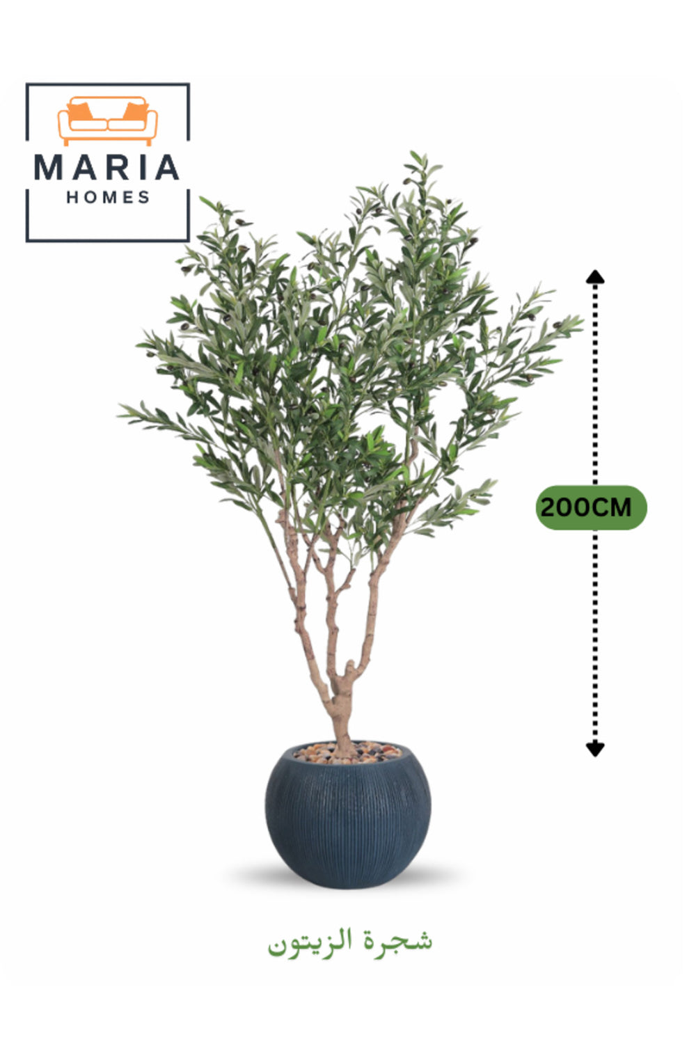 Add natural beauty to your space with this 200 cm tall olive artificial tree in a modern blue fiber pot.; Featuring realistic olive leaves and lifelike branches, it brings a refreshing Mediterranean style to your dŽcor.; Perfect for living rooms, majlis, offices, entrances, and restaurants.; Enjoy greenery all year round with zero maintenance and no watering or trimming required.; A stylish decorative plant for home, office, or Arabic dŽcor.