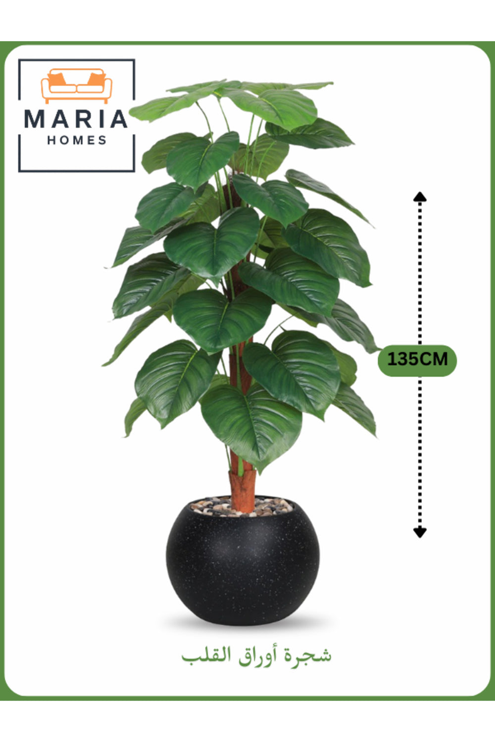 "Bring lush greenery into your home or office with this 135 cm artificial philodendron tree, designed with large heart-shaped leaves and a textured brown trunk for a natural look.; It comes in a rounded black plastic pot filled with decorative stones and is perfect for living rooms, bedrooms, offices, or lobbies.; This stylish faux plant is available in six pot colors: black, brown, grey, white, light brown, and gold, making it easy to match any artificial decor.; philodendron tree, 135 cm tall faux plant, black pot indoor greenery, heart leaf artificial plant, low-maintenance decorative tree, multiple pot color options"