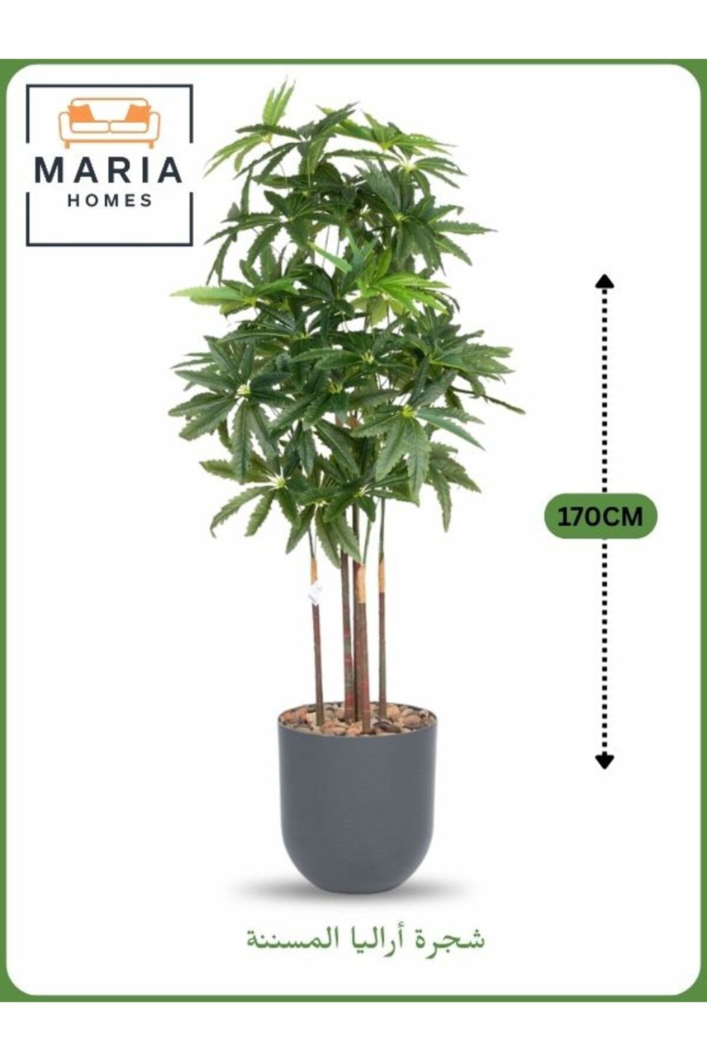 Add natural charm to your space with this 170 cm artificial Aralia tree designed with 5 lush branches in a modern gray plastic pot.; The realistic green foliage and strong stems make it a perfect addition to living rooms, offices, hotels, or event setups.; The stylish gray pot with decorative pebbles enhances elegance while providing stability.; This lifelike tree delivers the beauty of greenery without the hassle of maintenance, making it ideal for those seeking long-lasting freshness and dŽcor style.