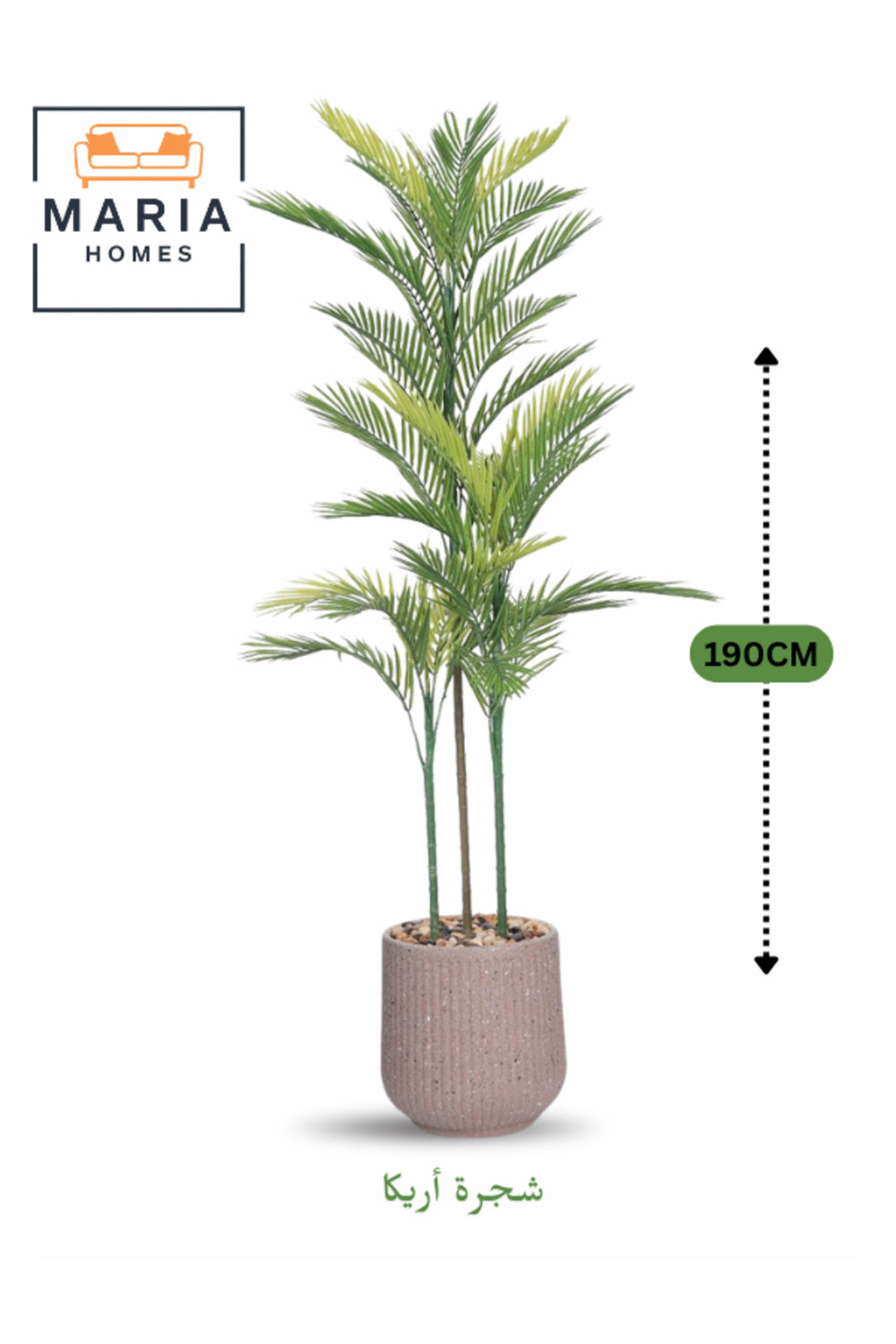 Tall 190 cm artificial areca palm in ribbed pot, perfect for stylish home, office, or majlis dŽcor.; Adds natural charm without maintenance.; Low-maintenance and elegant, it brings a natural Mediterranean touch indoors.