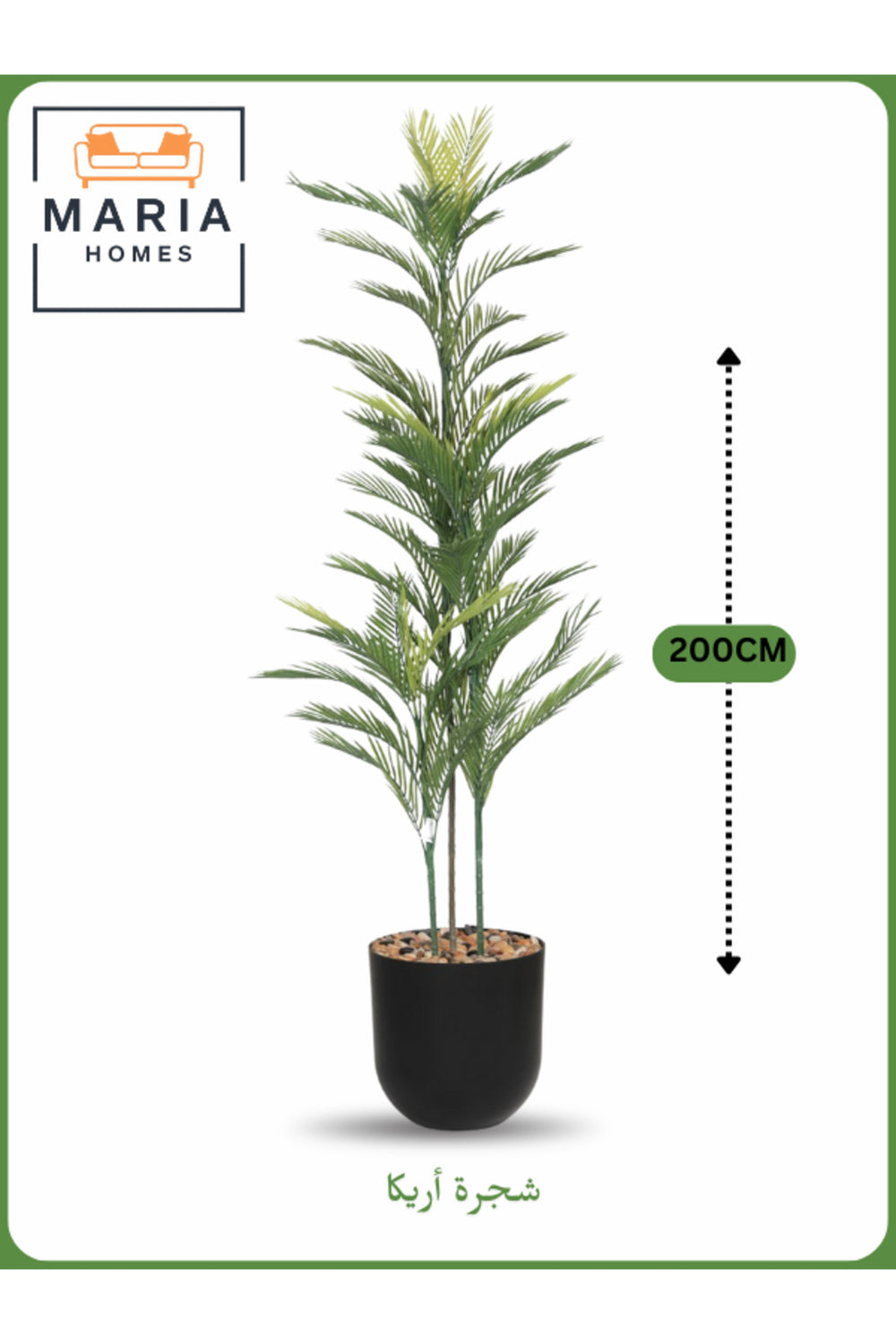 "Bring tropical sophistication to your space with this 200 cm artificial Areca palm tree, designed with lush fronds and three realistic trunks for an elegant look.; Set in a sleek black cylindrical pot filled with decorative pebbles, it's perfect for living rooms, hotels, offices, or modern entryways.; Available in black, brown, gray, beige, and white pot colors, this maintenance-free faux tree adds vertical greenery and timeless charm to any setting.; artificial areca palm tree, 200 cm indoor faux plant, black pot decorative palm, tall tropical greenery, realistic artificial tree for office or home, multiple pot color options"