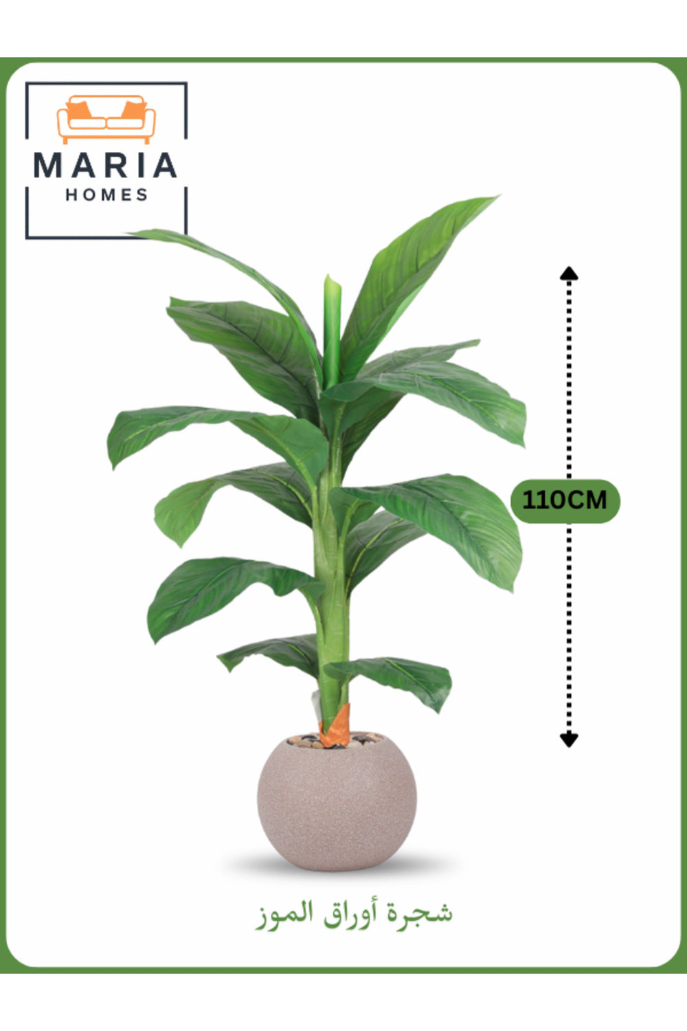 "Add a compact touch of greenery with this 110 cm artificial banana leaf tree, featuring layered wide green leaves and a natural-style trunk.; Set in a beige round pot with decorative stones, this small faux plant is perfect for side tables, entryways, kitchens, or office corners.; Available in beige and white pot colors, it brings tropical elegance to any space without watering or upkeep.; artificial banana tree, 110 cm small indoor plant, beige pot decorative tree, compact faux greenery, banana leaf artificial plant, low-maintenance indoor decor.; "