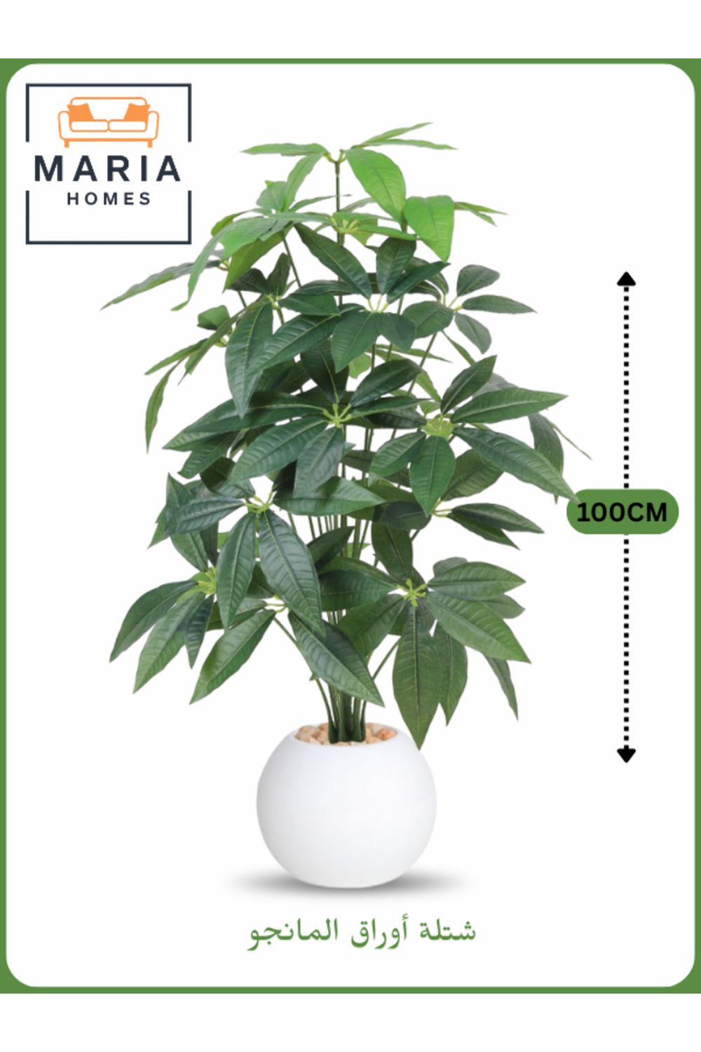 Add a fresh and natural look to your space with this 100 cm artificial mango leaf tree featuring 24 lush branches.; Set in a clean and modern white plastic pot, this faux tree complements both classic and contemporary dŽcor.; Perfect for living rooms, entryways, or offices, it requires no watering or maintenance.; A durable and elegant decorative tree that brings year-round greenery and style to your home or workplace.