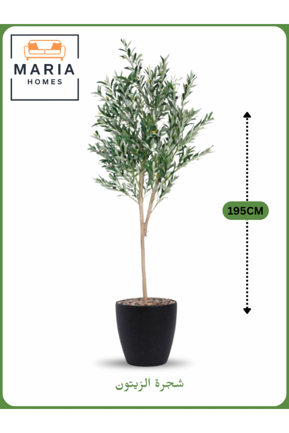 Add natural elegance to your space with this 195 cm artificial olive tree in a sleek black plastic pot.; Featuring realistic green leaves, a sturdy trunk, and decorative pebbles, it creates a refreshing Mediterranean look indoors.; Perfect for living rooms, offices, lobbies, or indoor gardens, this maintenance-free plant delivers lasting beauty without watering or care.